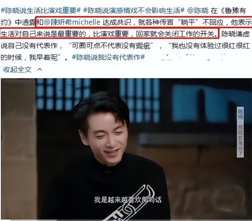 当他们的婚内出轨的谣言被传出时,他们都会说“我们不需要解释,我们知道自己是怎么样的,我们相爱,我们幸福,我们不会被谣言影响”。他们在对方的事业上,也会给予最大的支持和帮助。比如,陈晓会为陈妍希的电影《妈妈咪呀》做宣传,陈妍希会为陈晓的电视剧《梦华录》做宣传。他们也会在对方的工作上,给予最大的理解和包容。