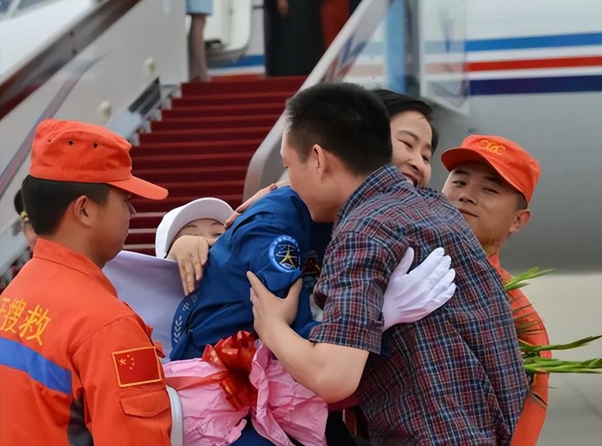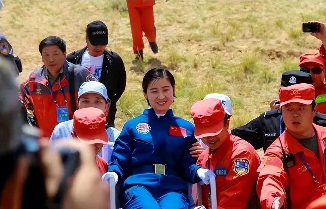 6月29日,返回舱在内蒙古着陆场顺利落地。刘洋被抬出返回舱,坐在轮椅上迎接团队的欢迎。