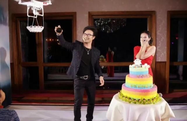 2015年,汪峰为章子怡策划了一场生日派对,邀请她的亲朋好友,将戒指绑在无人机上,缓缓飞向章子怡。