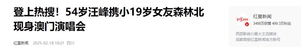 汪峰则被拍到和小19岁女友森林北(李巧)一起现身澳门,甜蜜看演唱会。