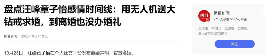 2023年10月23日,汪峰章子怡突然对外宣布离婚,引起不小的轰动。