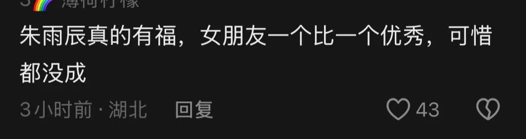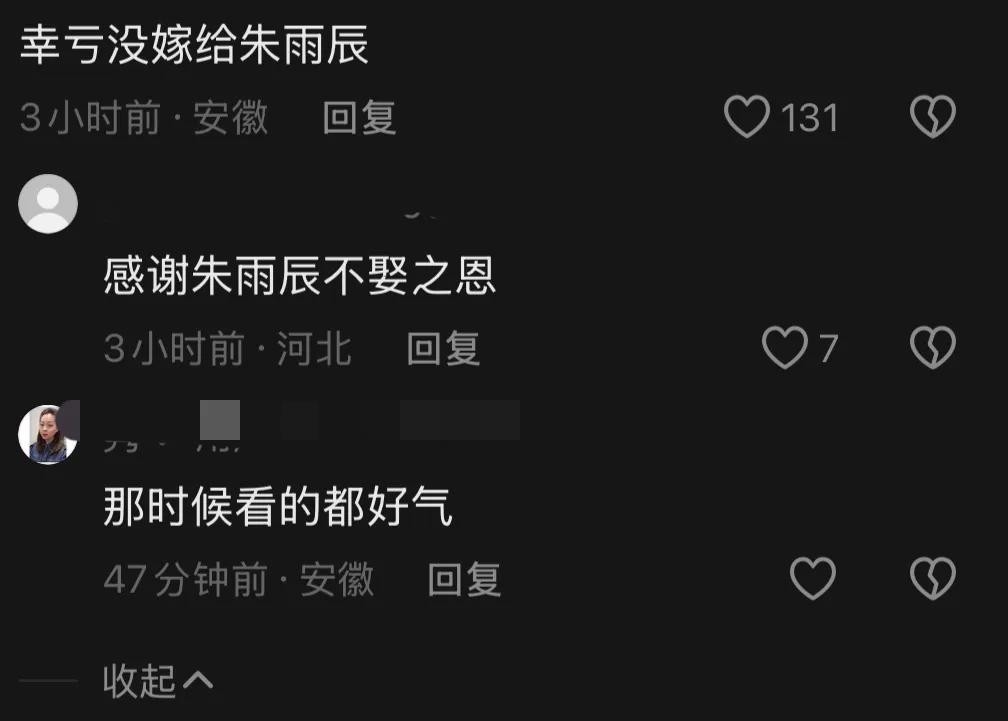 还有网友表示:幸亏没有嫁给朱雨辰,只能说朱雨辰错过了一个美好的另一半,太可惜了。