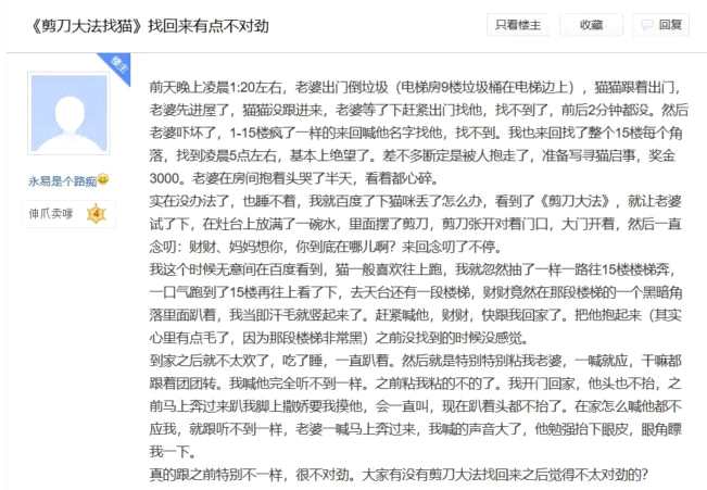 不过既然牵扯到了鬼,也有人会表示,自家猫主子在用剪刀大法找回来之后,显得非常不对劲!甚至有人说,剪刀大法会招鬼!