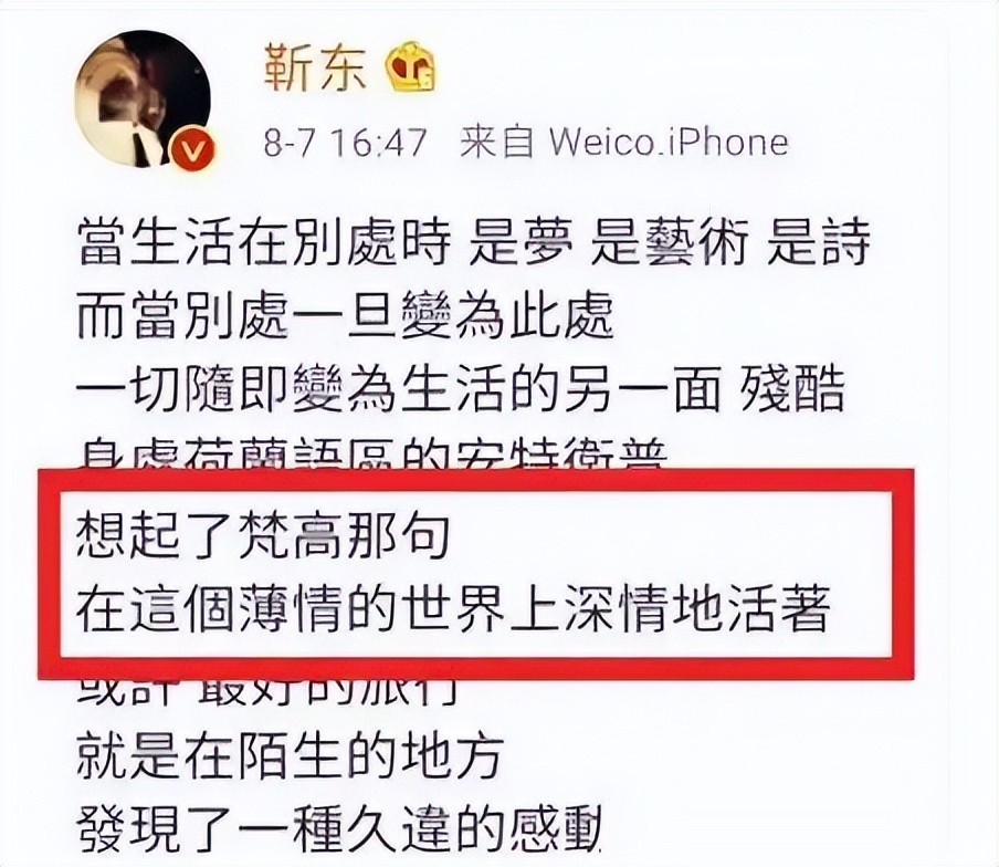 关注靳东的人应该都知道,靳东经常会发些诗情画意的句子,点出某位名人的名人名言。