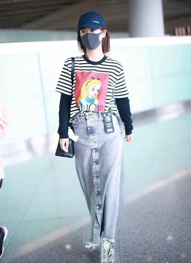 又比如这条裙子,把五五分的身材再次强化,浅色H型牛仔裙神奇的放大效果,让下身的宽大臃肿一览无余,拖到脚踝的长度,让整个腿有种喘不过气的感觉。