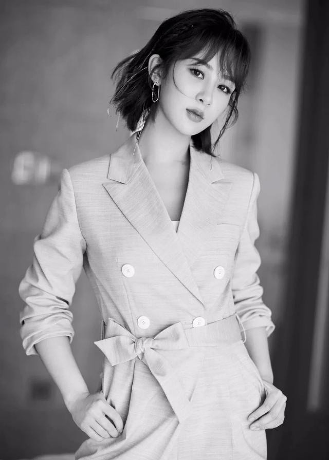 溜窄肩救星,平时甜美可爱造型居多的杨紫,挑一套很A的西装便无缝转型气场女王了,不出错穿搭必选。