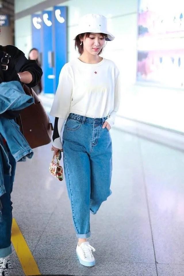 轻度溜肩,肩窄,显得头有点大,所以软踏踏的衣服搭配宽胯萝卜裤,杨紫穿起来就像一个大萝卜。