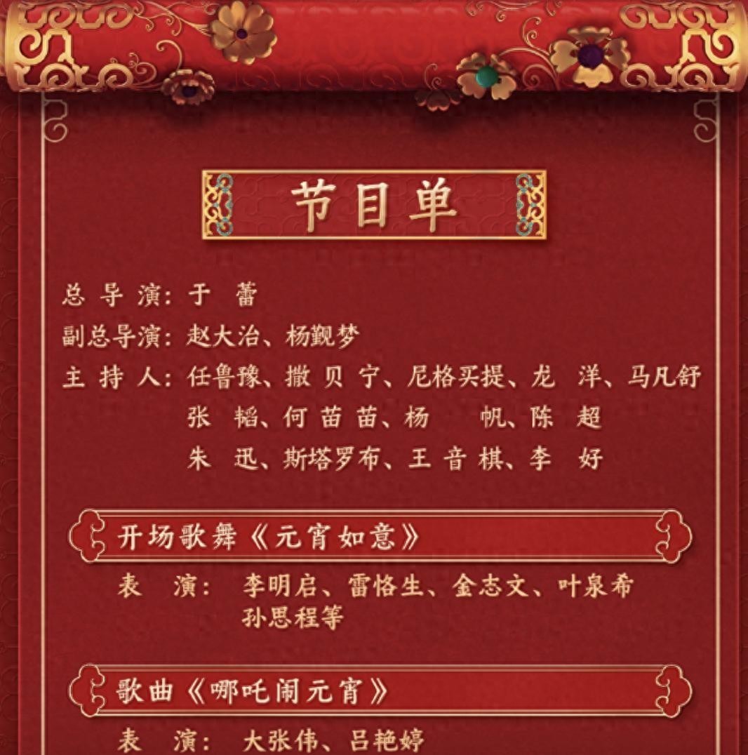 央视元宵晚会节目单,大张伟携哪吒燃爆舞台,5位明星春晚后返场
