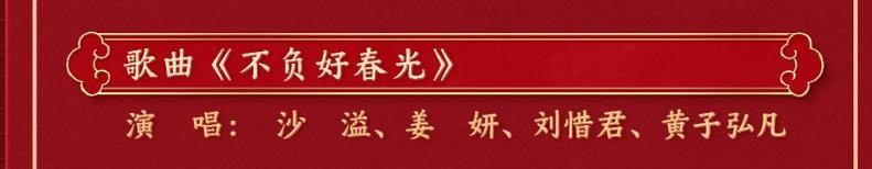 除此之外,沙溢、姜妍、刘惜君、黄子弘凡等人带来的《不负好春光》也充满了春天的气息与希望。这首歌光听歌名就感受到传递出来的一股浓浓的正能量气息,也让观众在新的一年里充满了期待与憧憬。
