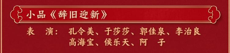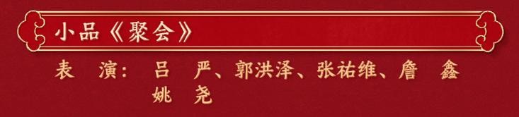 小品节目则有两个,分别是《辞旧迎新》和《聚会》,参加表演的演员们有:孔令美、于莎莎、侯乐天、吕严、张祐维、姚尧等人。这两个小品都是比较贴近年轻人生活的题材,不同的是,这些小品演员都是新人,不知道他们表现如何呢?