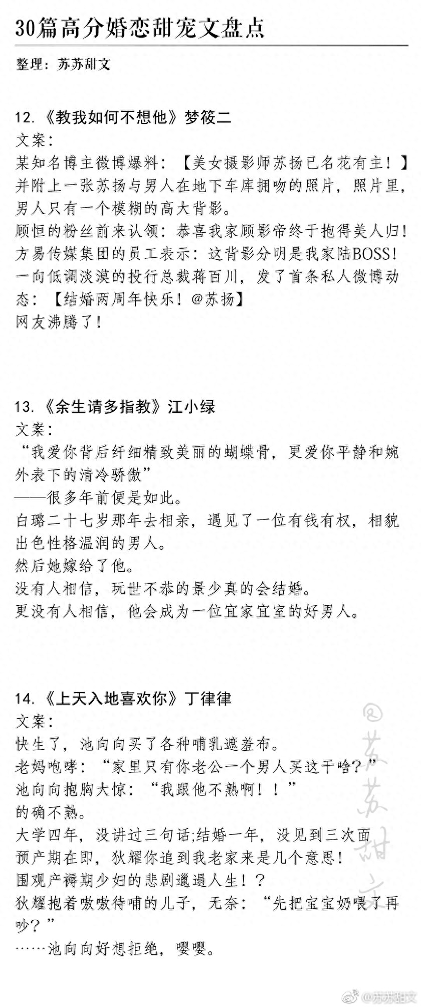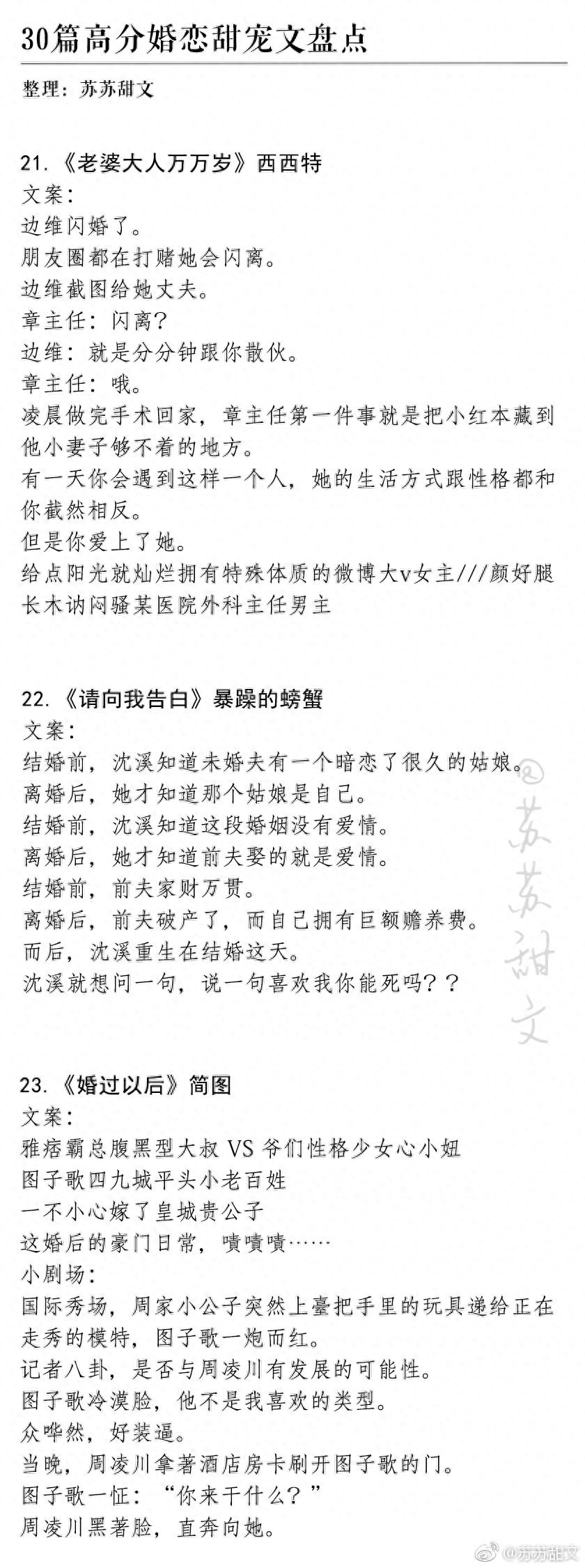 今天推荐30本高分婚恋甜宠文,婚后甜蜜日常,看了就想去结婚,温馨又治愈,高甜预警。