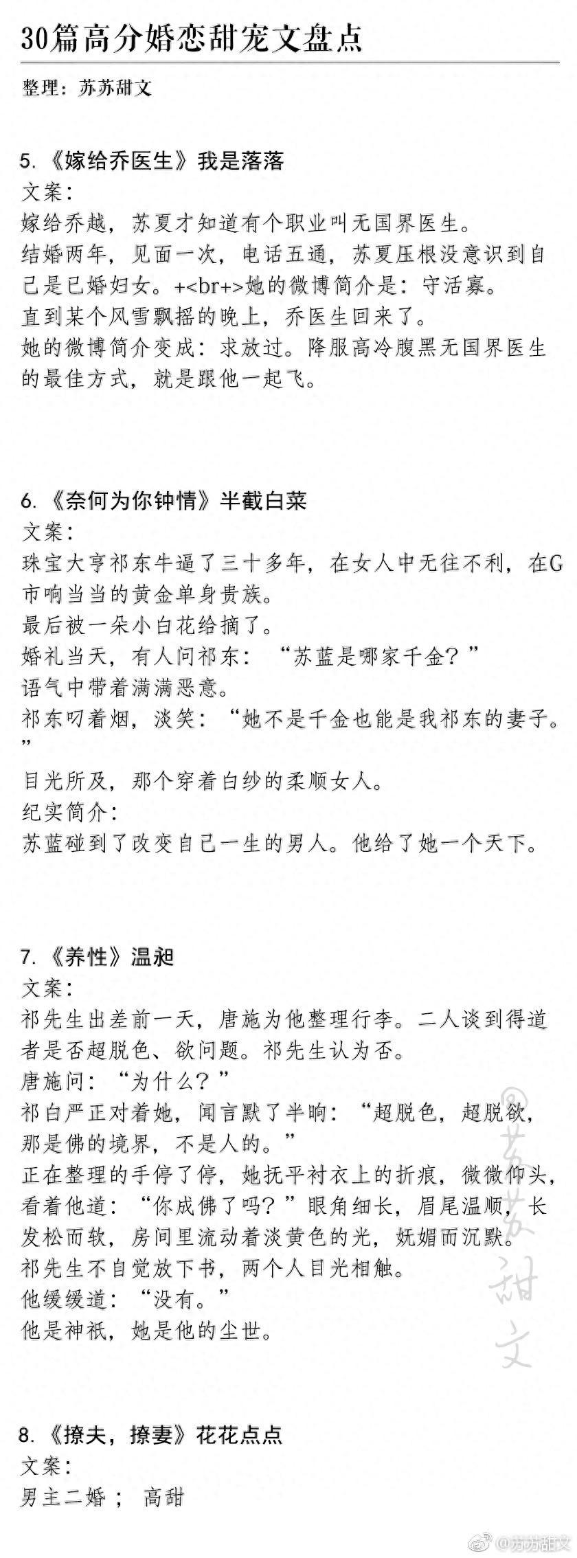 强推!30本高分婚恋甜宠文,婚后甜蜜日常,看了就想去结婚,高甜