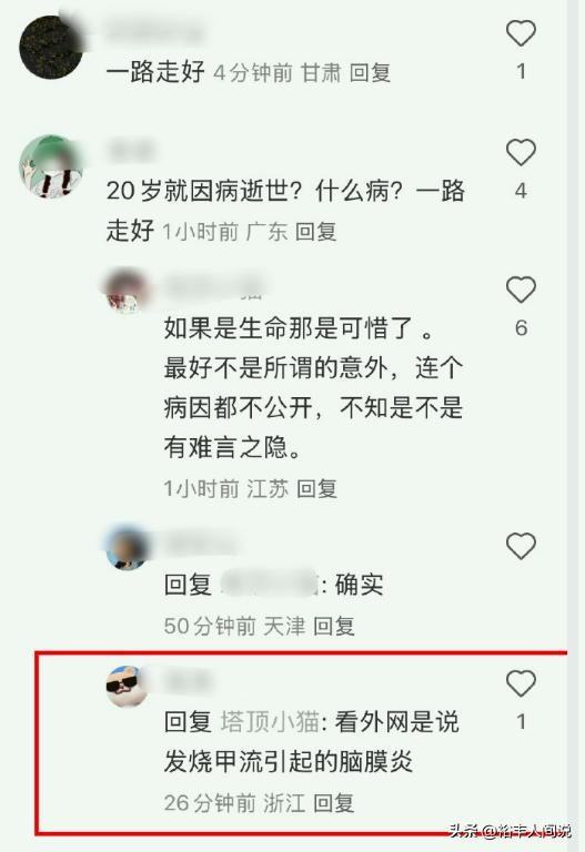消息传开之后,诸多网友纷纷表示悲痛和惋惜,她才20岁,还有着大好青春,为何会这般突然呢?