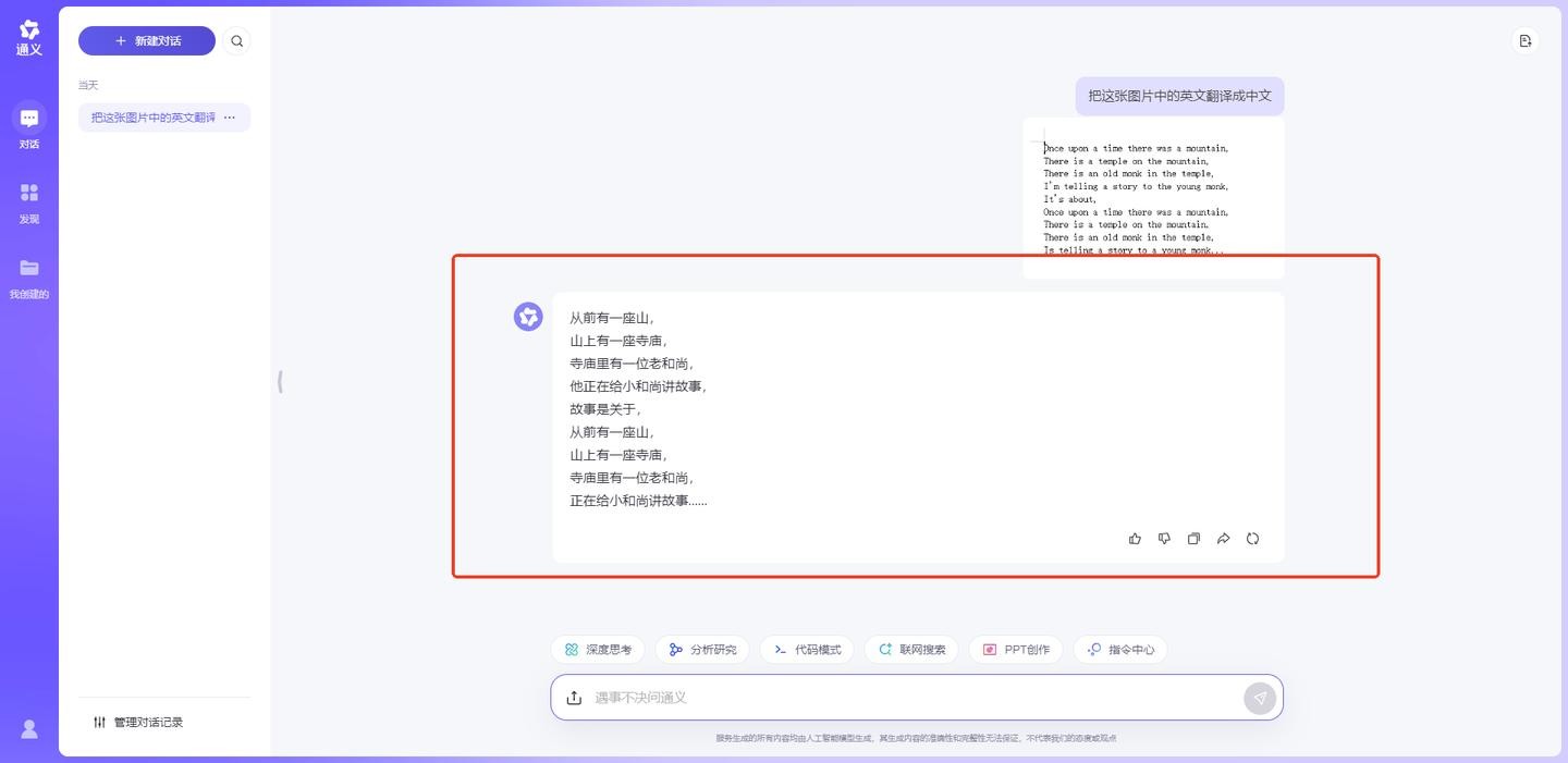 一个还不错的大模型工具,不仅可以用来用来回答问题、翻译图片中的文字制作PPT等功能,还能将图片中的位置翻译成合适的图片。