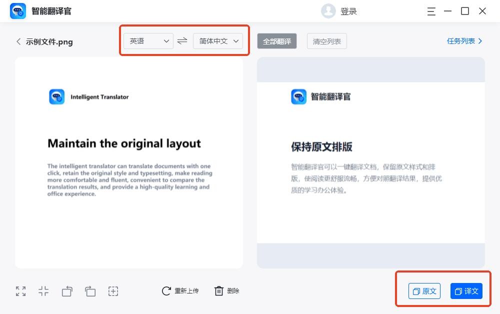 设置翻译前后的语种后软件就会自动将图片中的英文翻译成中文,而且格式排版都和原文一样,翻译的效果也是很好,能够直接复制保存翻译前后图片中的文字;还能实现原文和译文实时对照翻译结果,对于需要翻译图片中文字的朋友来说非常实用。