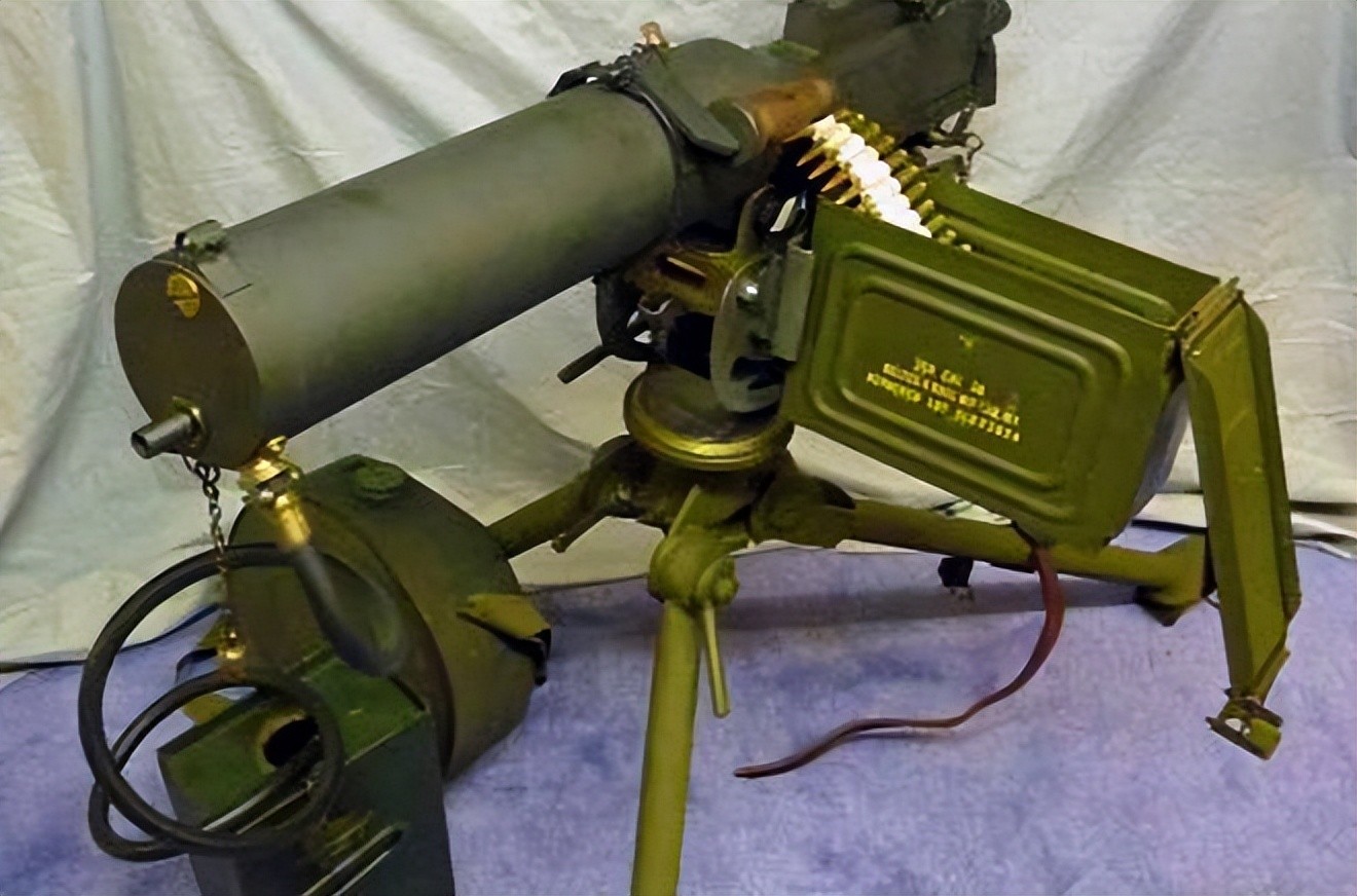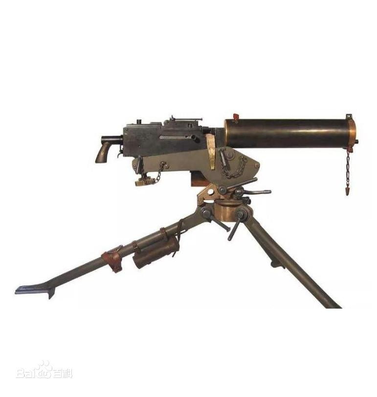 M1917式勃朗宁重机枪是由美国著名枪械设计师约翰·摩西·勃朗宁,在1900年设计,1910年后参考德国马克沁机枪持续改进而来的一款7.62毫米口径水冷式重机枪。枪管外套有3.3L水的套筒,用来冷却枪管。到第一次世界大战结束时,总共生产了56608挺M1917式机枪。到1936年时,此枪已经进化到M1917A1式并列装美军制式武器。在第二次世界大战期间,美国通过租借法案还大量提供给英军、法军自由军团等盟军国家对抗法西斯使用,中国国民党军也获得了很多M1917A1的援助。