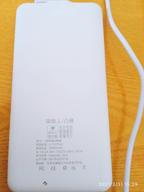 那从Redmi 9A电池的充电实际效果来看 充电宝大致真实的电池容量大约为 四千毫安 给手机充电时间长了充电宝的发烫有点严重 冬天可以拿它热手的那种 输出功率背面写为输出口1为5V/2.1A 口2为5v/1A 没有很明显的感觉
