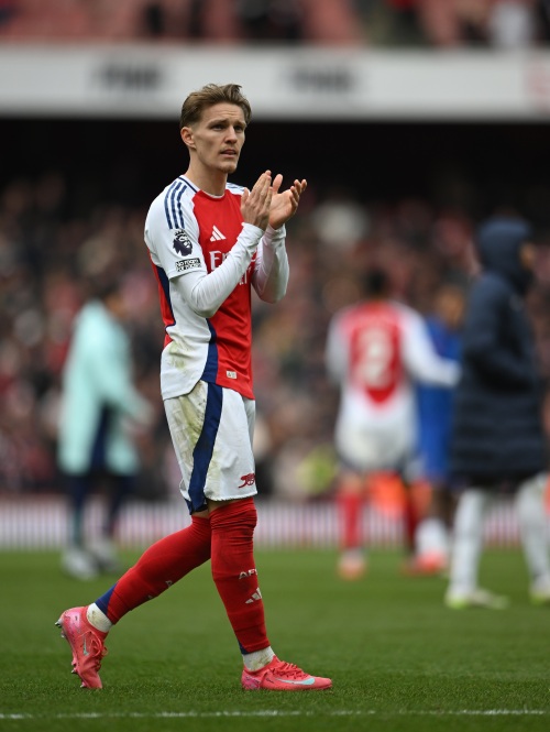 3月16日,阿森纳队球员厄德高赛后向球迷致意。新华社/欧新
