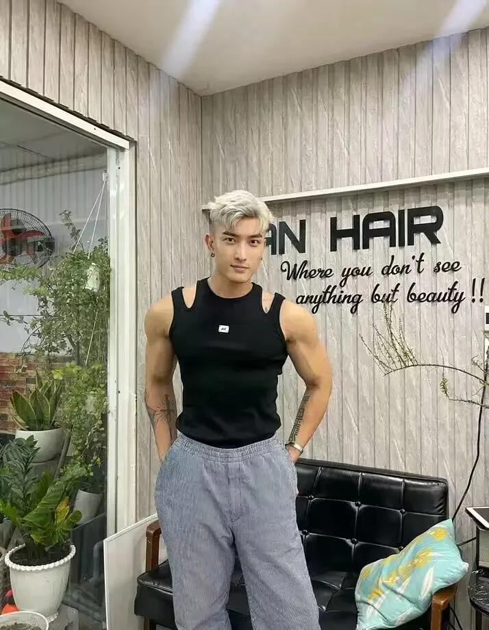 2023年,陈潭山的新发型——黄头发,银发,并拍摄一系列艺术照,看上去很新潮,还有蒸桑拿。