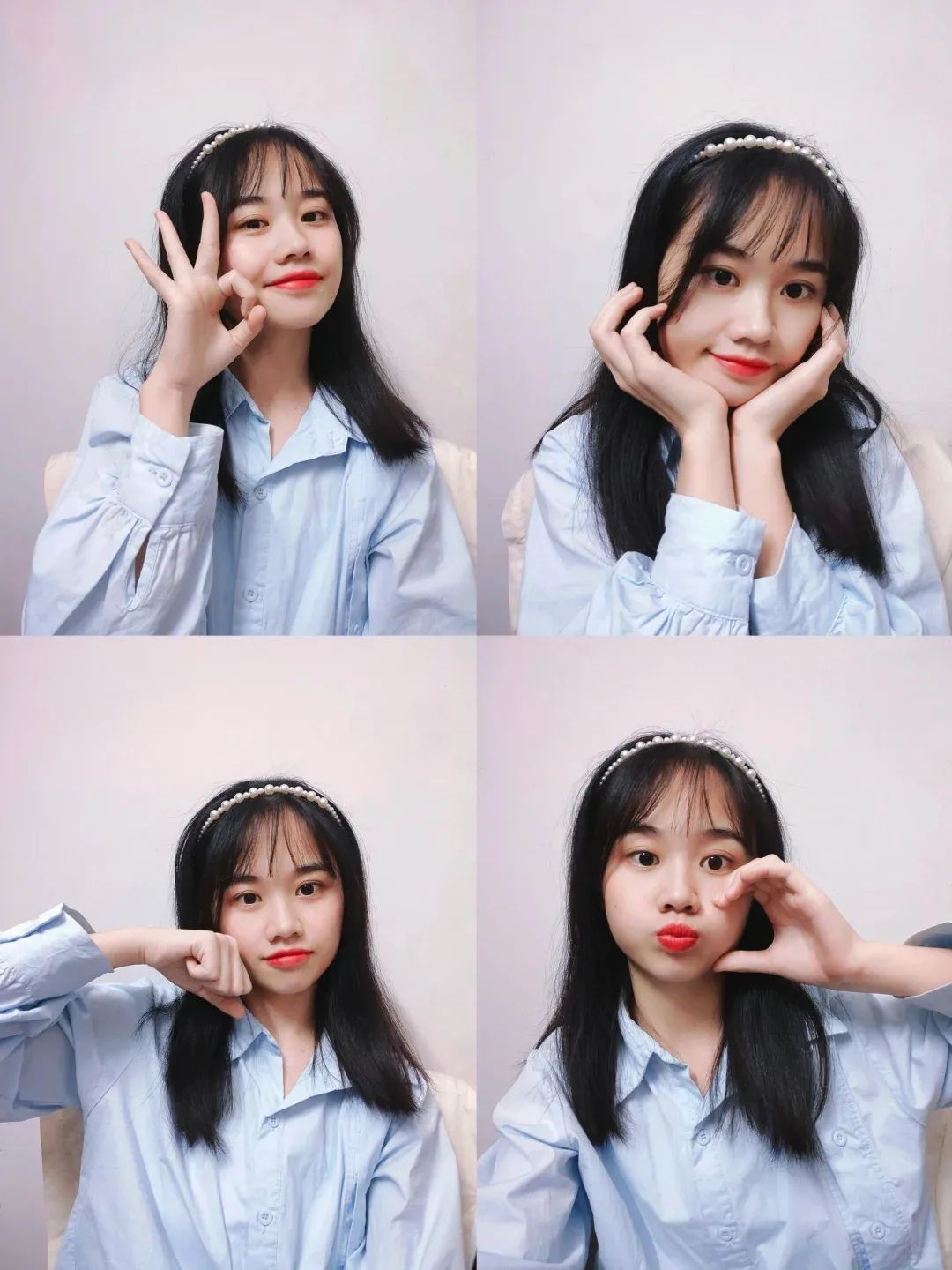 有时候一双手就能决定照片的整体感觉。比如用手比心、遮眼、托腮或者做“OK”的手势,这些动作不仅能让你显得俏皮,还能很好地修饰脸型。轻轻摆一个心形手势,不仅多了一份甜美,还让画面更有层次感。