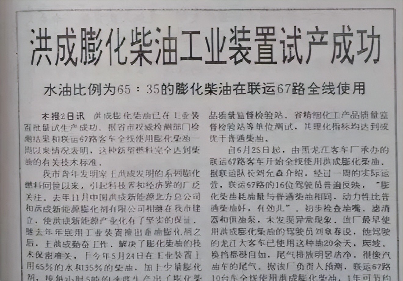 王洪成也是胆大,明知“水变油”是一场骗局,可他仍然接下了合作。1993年6月,哈尔滨67路公交车宣布全部使用洪成燃料。在鼓乐声中,副省长和副市长剪了彩,十几辆灌有洪成燃料的67路公交车行驶到了大街上。