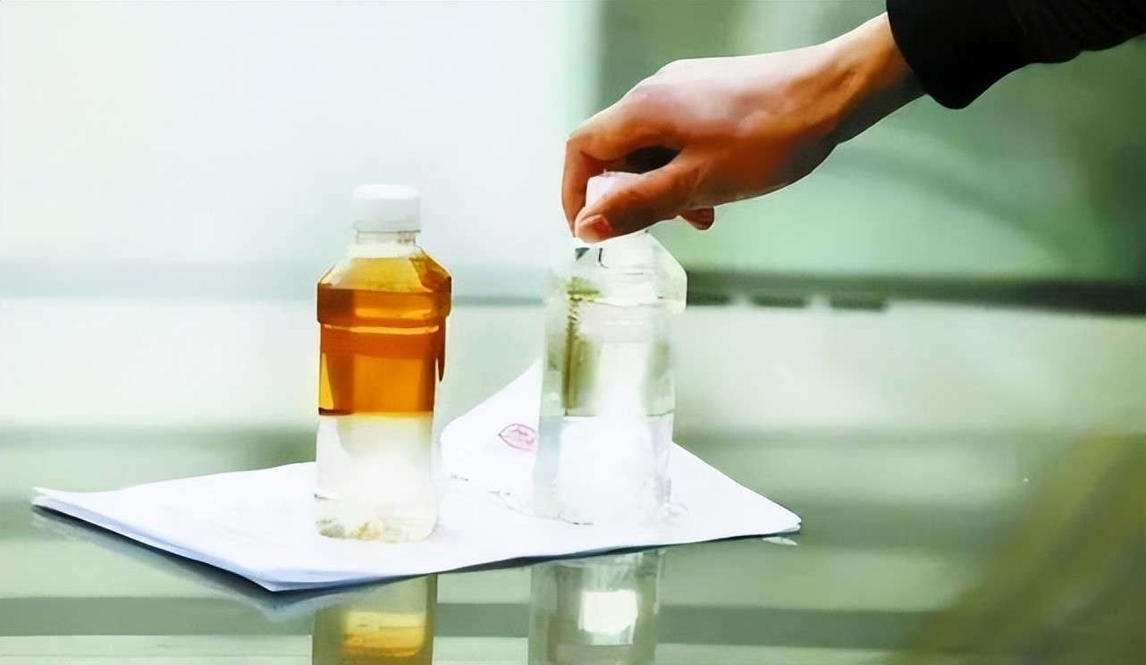 在副局长确定是水以后,王洪成从口袋里掏出一个装着“洪成基液”的小瓶子,往桶里滴了几滴,过了一会儿,他又掏出另一种药液加入水里,桶里的水渐渐地变成了浅红色。