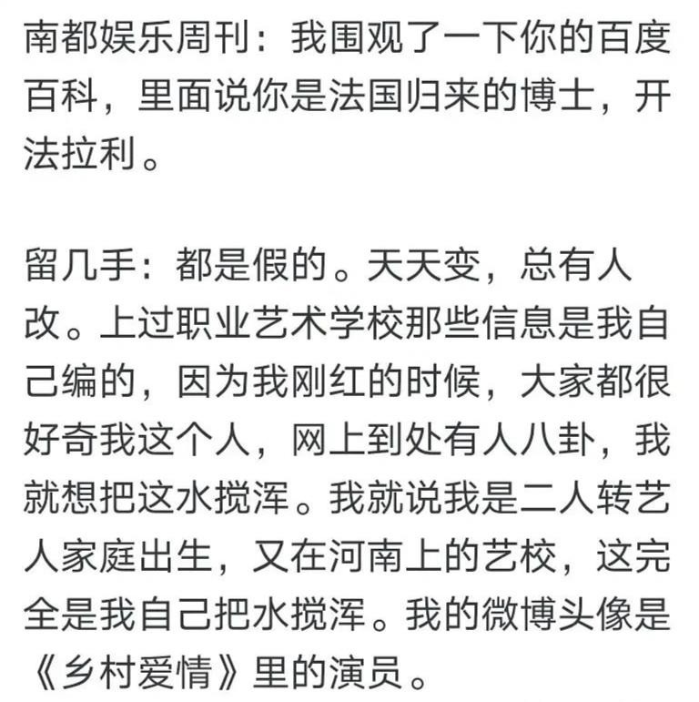 留几手,本名刘爽,出生于吉林一个普通的农民家庭。爷爷是二人转老艺人,或许也为他日后独特的表达方式埋下了伏笔。