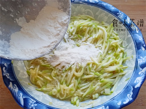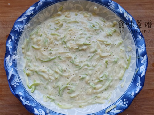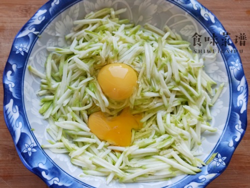 2、整个过程不用添加一滴水,有蛋液和西葫芦丝的内部水分,就已经足够了。