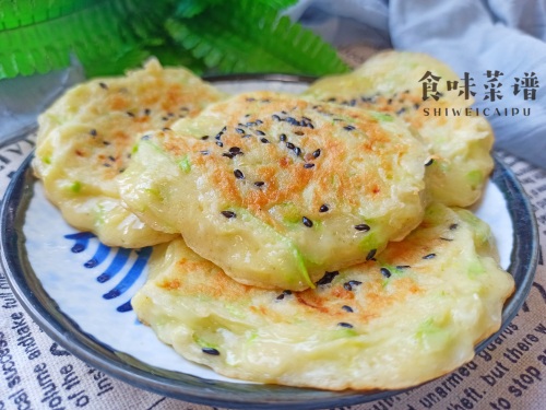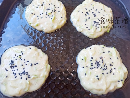 食材:西葫芦、鸡蛋、面粉、葱花、黑芝麻