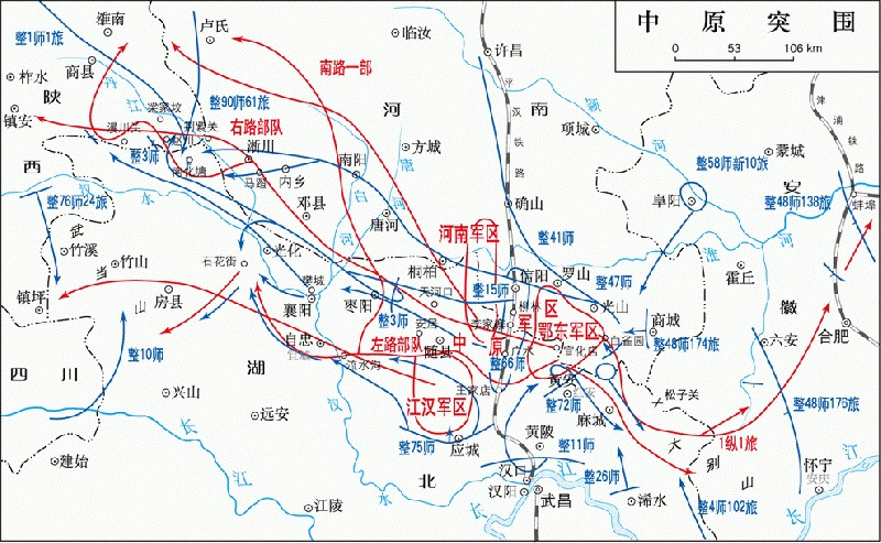 蒋介石非常清楚中原地区战略位置的重要,因此从1945年8月15日日寇宣布投降开始,就调集20多个师和8个游击纵队对中原军区进行包围和蚕食,肆意抢占城镇和交通要道。11月中旬,国民党军出动6个军14个师的兵力,夺占中原解放军主力所在的桐柏山区;随后又从第一、五、六、九、十战区调集20多个师30万大军,从四面八方向中原解放区大举进攻,先后夺占大洪山、白兆山和四望山等地区。到1946年6月,国民党军先后进攻1000多次,侵占县城、村镇1100余处,原本15万平方公里的中原军区最后仅剩不足十分之一的面积,纵横不足百里。