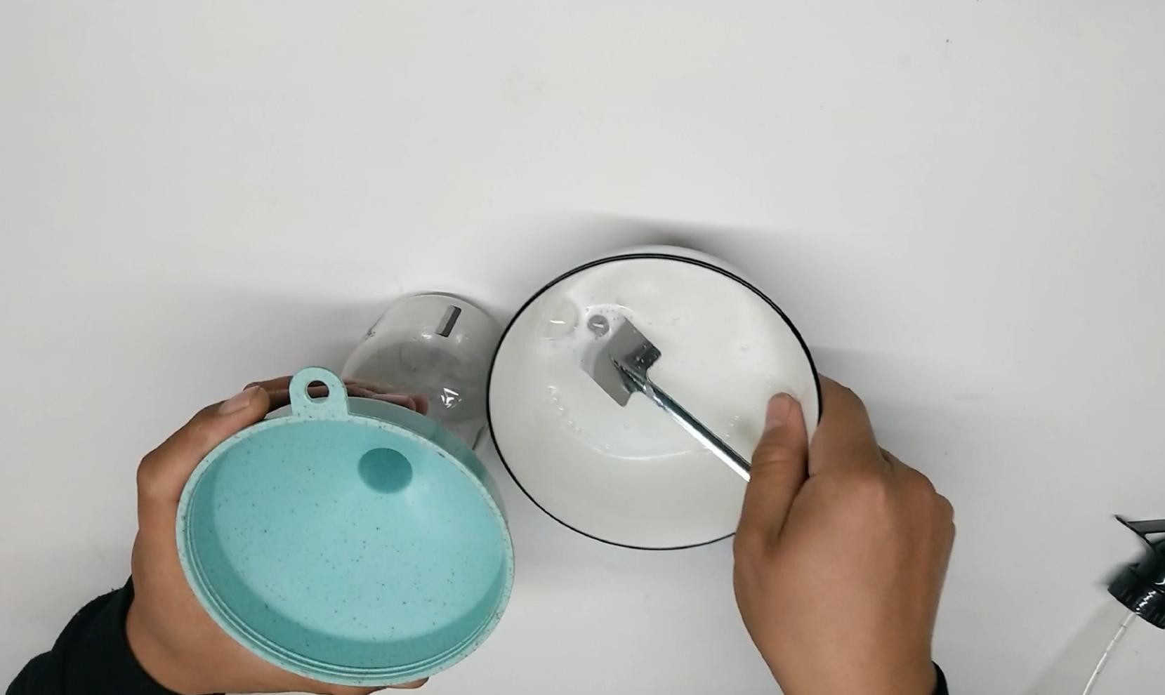 然后我们再挤入一点洗洁精,我们再倒入一点我们家中常用的白醋,白醋也倒入一勺就可以,最后我们倒入一点温水,我们搅拌一下。把我们的洗洁精均匀的溶解开就可以了,然后拿出我们家中常用的喷壶,我们直接往喷壶里倒,不好倒,这时我们准备一个漏斗,这样倒起来就方便多了。