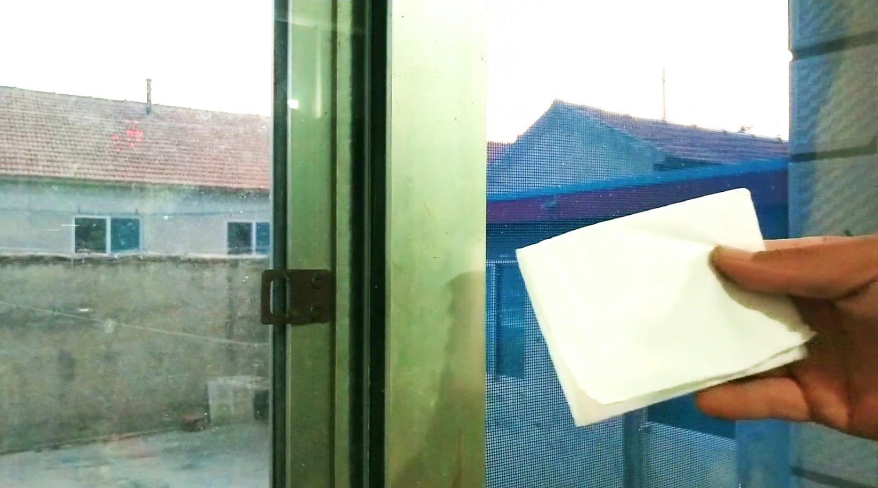 这是我们准备一个纸巾,用纸巾擦拭一下看看效果如何,大家看一下,是不是非常干净,一点脏东西都没有留下呢?怎么样?大家觉得妙招哥今天分享的这一个快速清理纱窗的小技巧简单吗、实用吗?