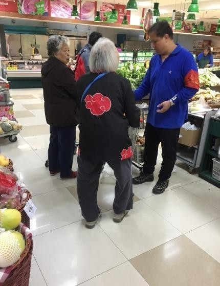 最后这位奶奶还是很潮的,这真是动漫周边的吗?还是哪家制衣厂觉得这个图案不错,就给弄到了衣服上。不过看上去还是很好看的,老奶奶穿上这衣服也很可爱。