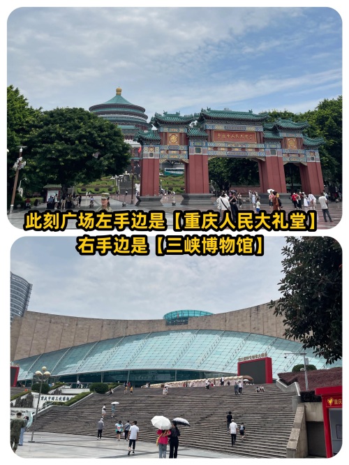 广场一边是【重庆人民大礼堂】,一边是【三峡博物馆】