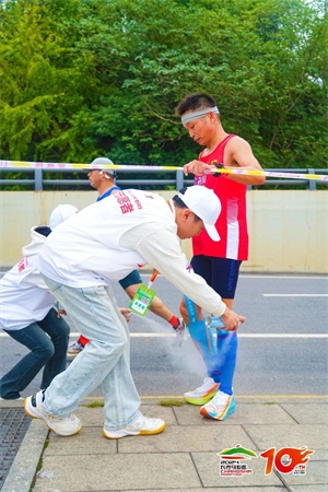 设置了急救跑者120人、医疗志愿者867人、拉伸按摩医疗志愿者388人、医护人员201人、蓝天救援队300人、移动AED137台,以及各种相关药品,所有医疗保障力量组成一张安全网,让所有选手得以安心投入赛场的拼搏。