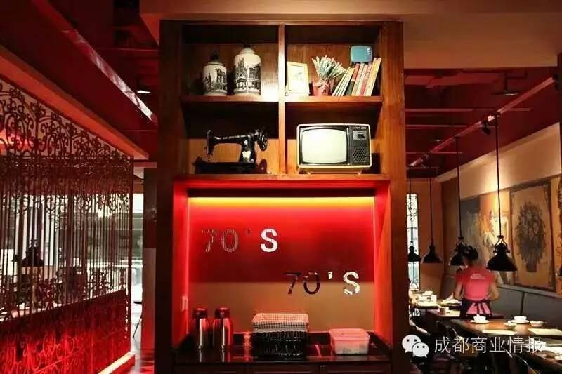 70年代经典怀旧物件充盈着餐厅的任意一个角落,