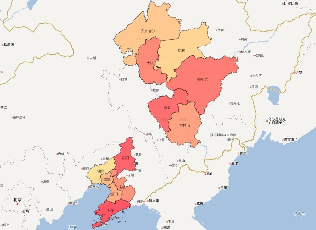将这12座城市放在地图上直观比较,会发现这12座城市基本上都是处于三座省会城市和大连这座副省级市周围,经济强市的周围辐射作用也体现在这张地图上。从地理位置来看,大连是整个东三省地理位置最好的城市:大连三面环海,地处渤海之滨,拥有较好的港口和气候优势。