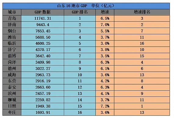2019山东16地市GDP