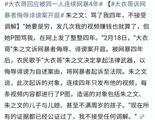 家人是底线!忍了4年多的大衣哥起诉网暴者,不接受任何调解