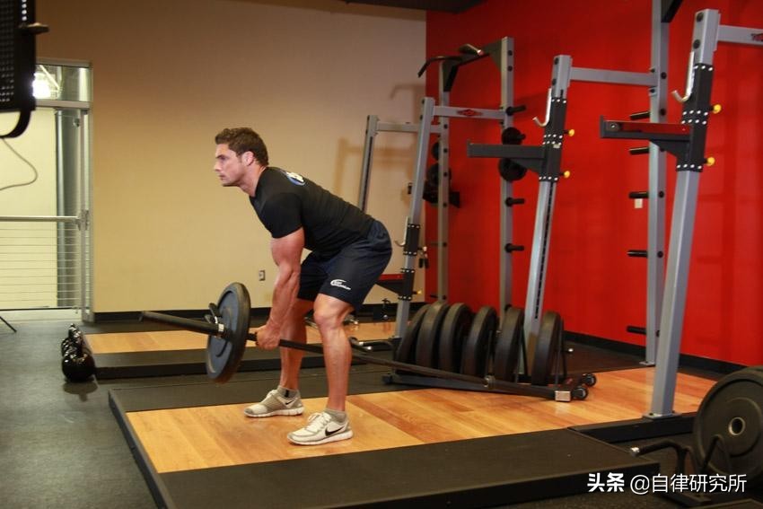 动作开始时,杠铃应紧靠着大腿,