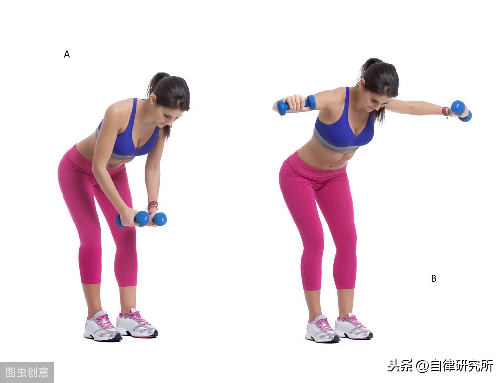 然后再慢慢下落哑铃同时伸展背肌。