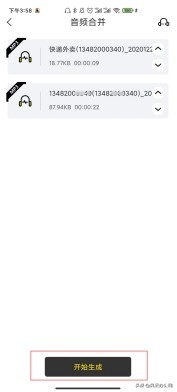 调整音频合并的顺序,调整好之后,点击开始生成。