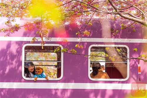成都新都区漫花庄园樱花盛开,吸引众多游客打卡拍照,定格春日美景 。