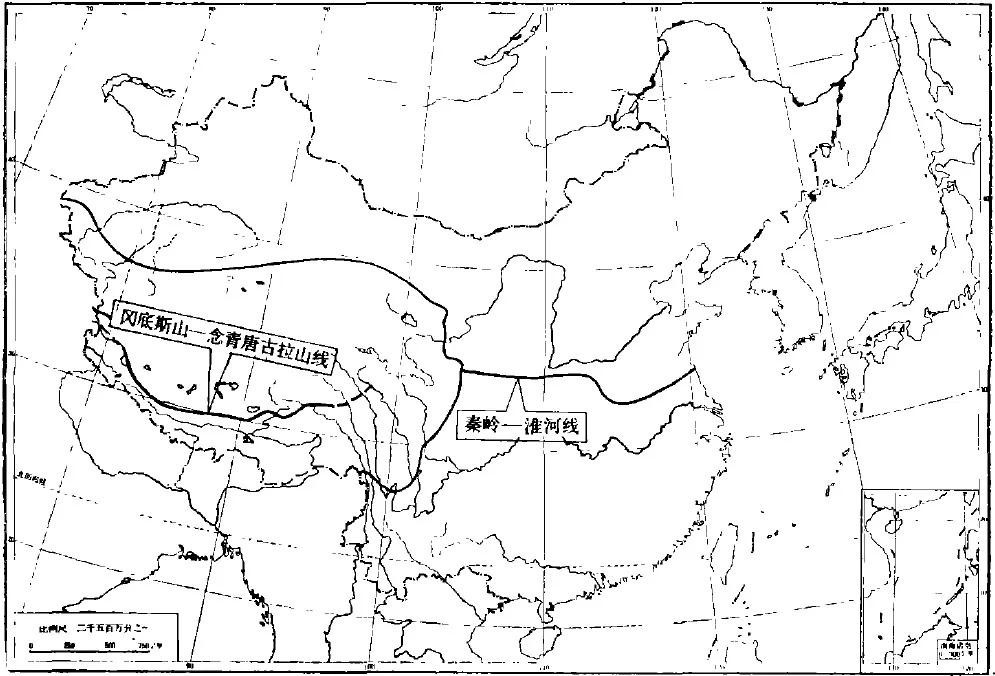 ▲ 在中原地区是秦岭-淮河线,在青藏高原则是冈底斯山-念青唐古拉山线。