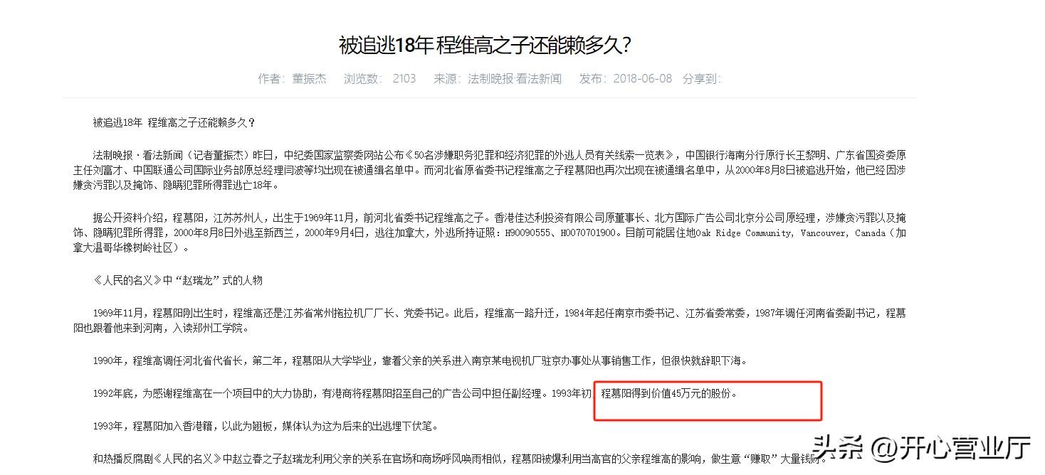 自此,程慕阳开始了海外逃亡的生活,但和电视剧《人民的名义》丁义珍的悲惨经历可不一样,他在加拿大逃亡时,过得真是有滋有味,不仅在商业上逐渐做大,甚至还想安排女儿在加拿大从政!