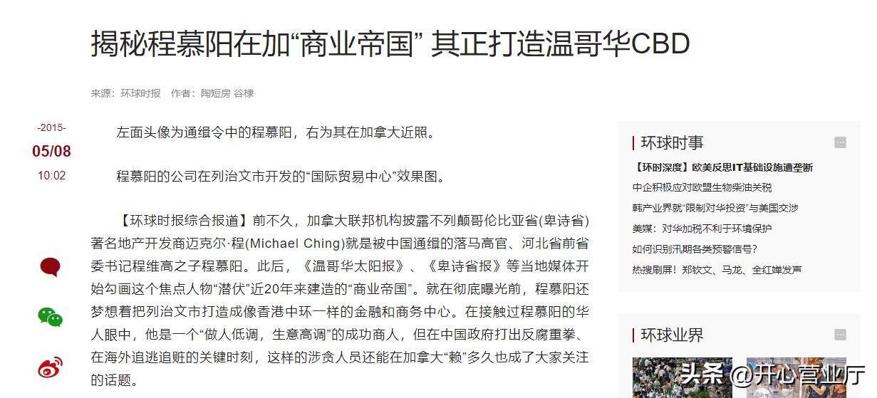 环球时报2015-05-08:揭秘程慕阳在加“商业帝国” 其正打造温哥华CBD