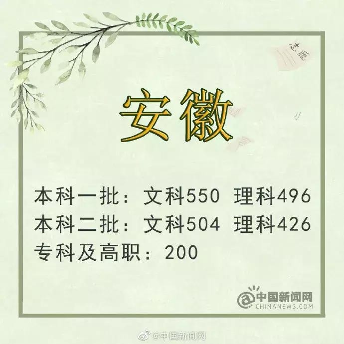 据安徽教育招生考试院网站消息,6月23日,2019年安徽高考分数线出炉:文科本科一批550分、本科二批504分、高职(专科)批200分;理科本科一批496分、本科二批426分、高职(专科)批200分。