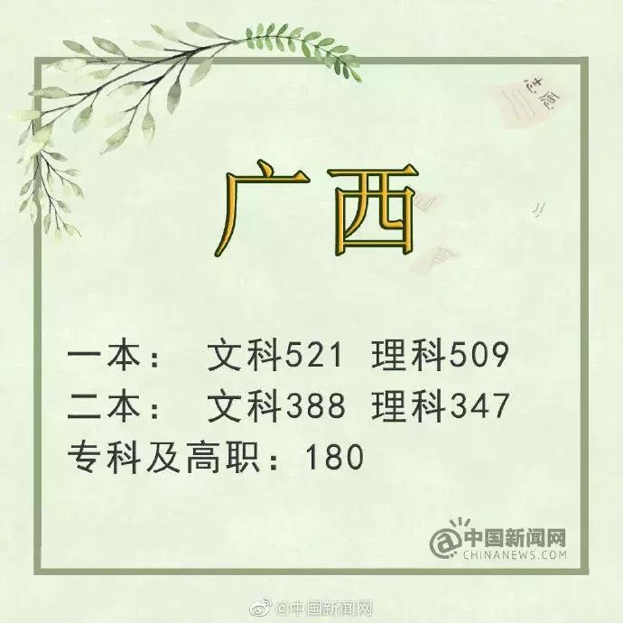 6月23日上午,广西公布2019年普通高校招生录取最低控制分数线:本科第一批录取最低控制分数线:理工类509分,文史类521分。本科第二批录取最低控制分数线:理工类347分,文史类388分。高职高专录取最低控制分数线:理工类180分,文史类180分。