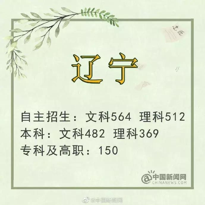 据辽宁省教育厅官方微博消息,6月23日,辽宁省2019年高考分数线公布:文史类自主招生控制分数线564分、本科控制分数线482分、专科(高职、提前专科)控制分数线150分;理工类自主招生控制分数线512分、本科控制分数线369分、专科(高职、提前专科)控制分数线150分。