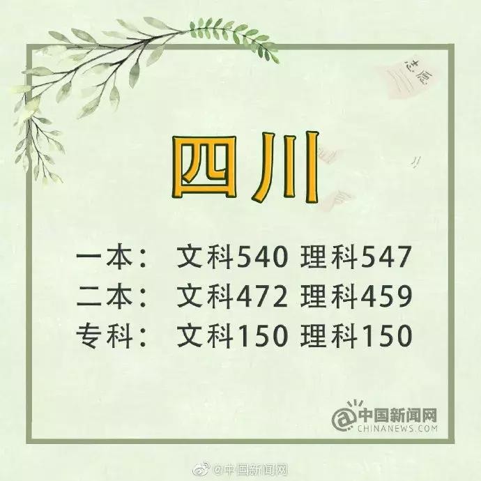 据四川省教育考试院官方微信消息,四川省2019年普通高校招生考试各类别录取控制分数线已确定。文科一本540分、二本472分、专科150分;理科一本547分、二本459分、专科150分。